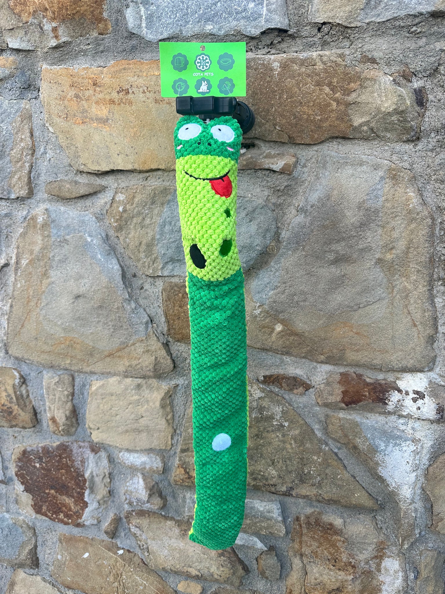 Ma il vero segreto di questo gioco sta nella sua capacità di nascondere piccoli premi all'interno! Perfetto per inserire snack o croccantini, il **Serpente Nascondi-Premi Sonoro** invita il tuo cane a esplorare e trovare i gustosi tesori nascosti, mantenendolo impegnato e mentalmente stimolato. Il design lungo e flessibile del serpente lo rende ideale per tirare, masticare e lanciare, offrendo una varietà di possibilità di gioco.