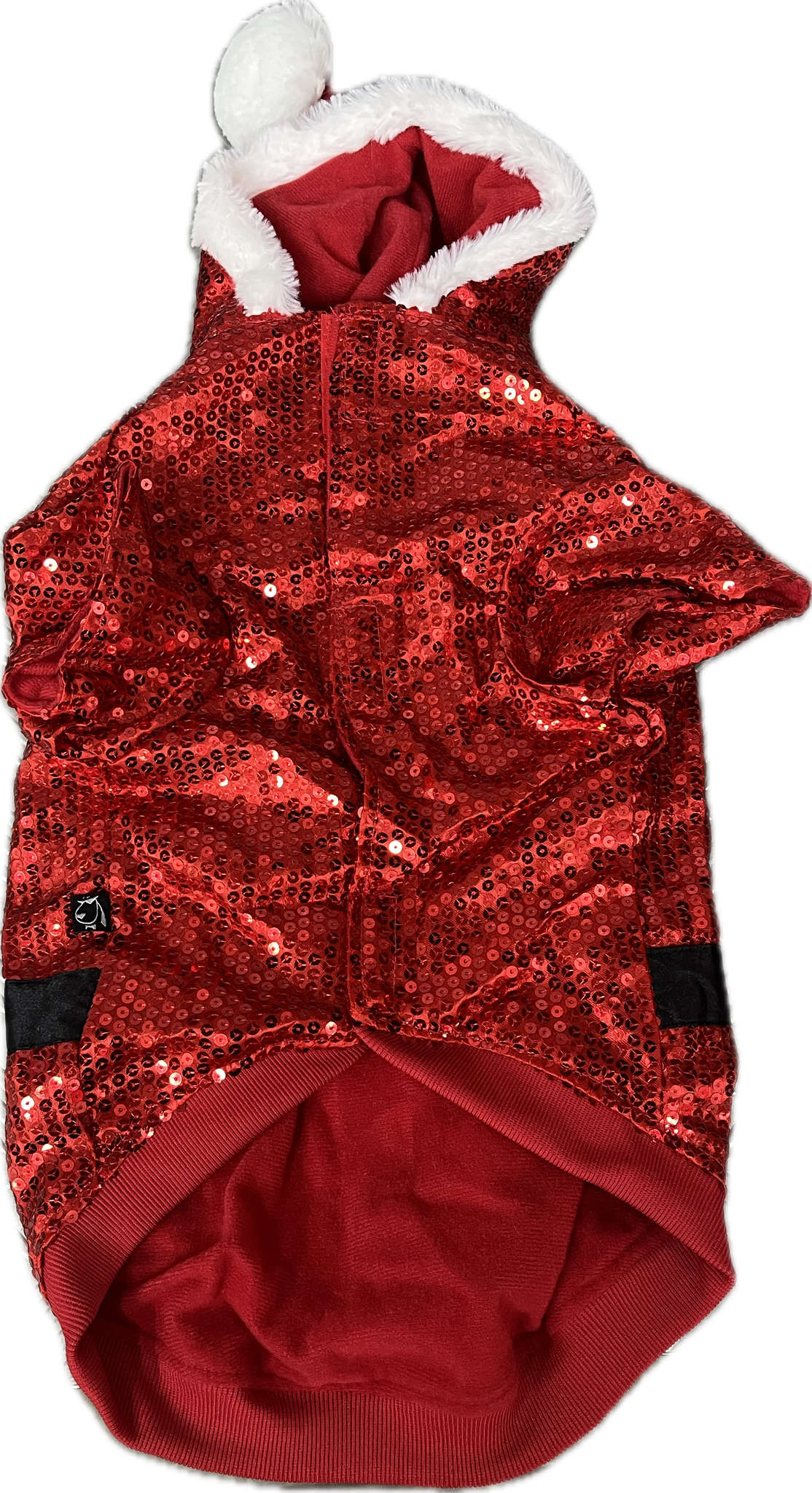 Dona un tocco di festa al tuo amico a quattro zampe con questo maglioncino rosso brillante decorato con paillettes scintillanti! Il design è arricchito da una cintura nera e un cappuccio con un soffice pon pon bianco. Perfetto per celebrare il Natale con stile, è ideale per mantenere il tuo pet al caldo e farlo risaltare durante le festività.