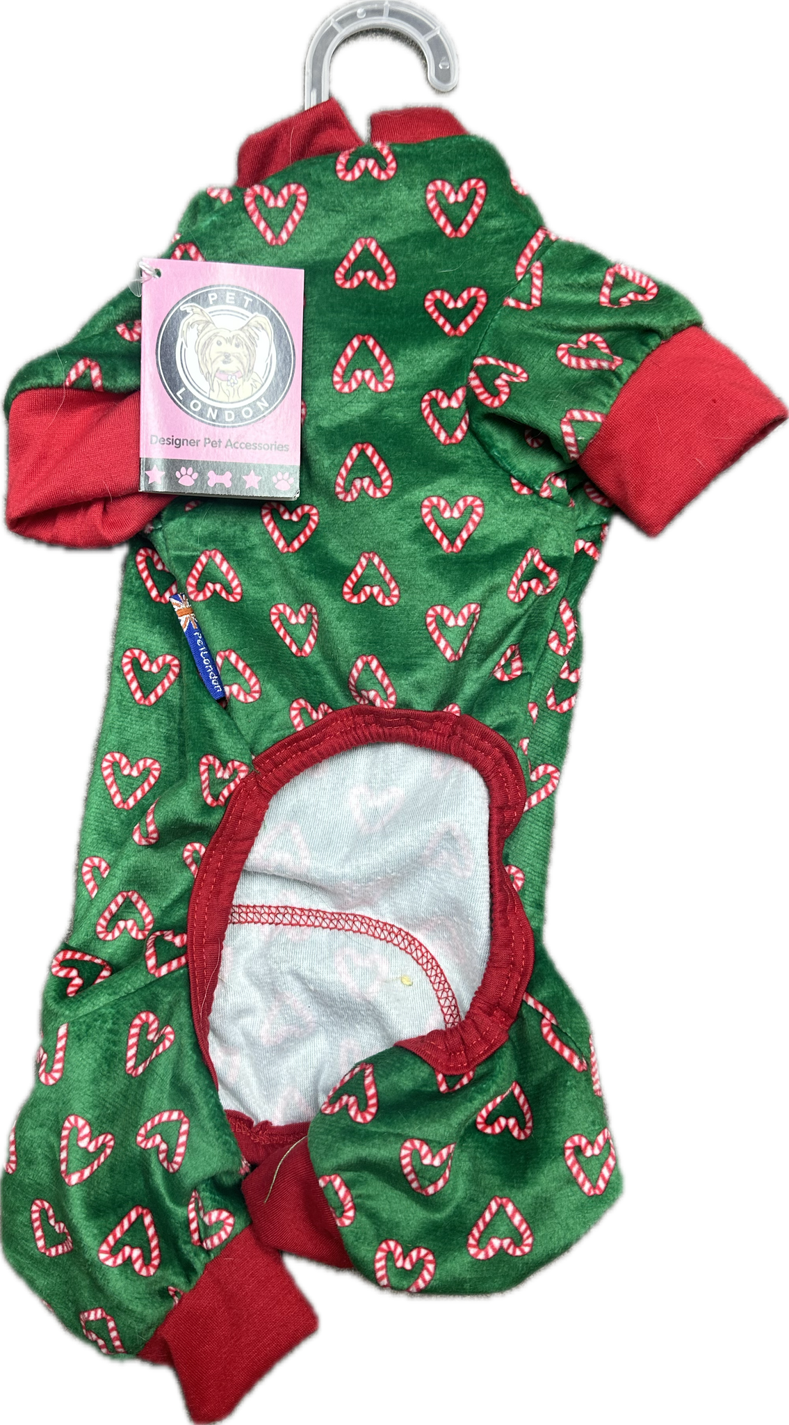 Descrizione: Comodo pigiama natalizio in morbido tessuto verde con decorazioni festive. Perfetto per tenere il tuo amico a quattro zampe al caldo durante le festività, aggiungendo un tocco di allegria con il design a tema natalizio. Adatto per cani di piccola taglia come Pomerania e Maltese. Lavabile in lavatrice a basse temperature.